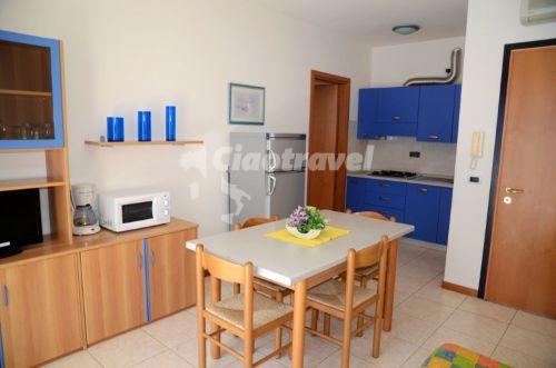 B - 5 főre: nappali kinyitható kanapéval 2 főre, konyhasarok, hálószoba franciaággyal és 1 ággyal, fürdőszoba, tv, széf, mikró, légkondicionálás, erkély.