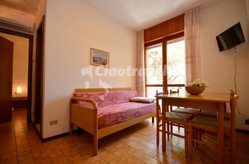 B - 4 főre: nappali kanapéval 1 főre, konyhasarok, hálószoba franciaággyal és 1 ággyal, fürdőszoba, tv, széf, mikró, légkondicionálás, erkély.