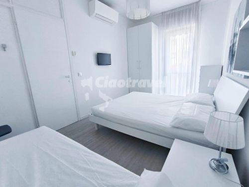 HR - 4 főre: nappali kanapéval 1 főre, konyhasarok, hálószoba franciaággyal és 1 ággyal, fürdőszoba, tv, légkondicionálás, mikró, erkély. Felújított apartman.