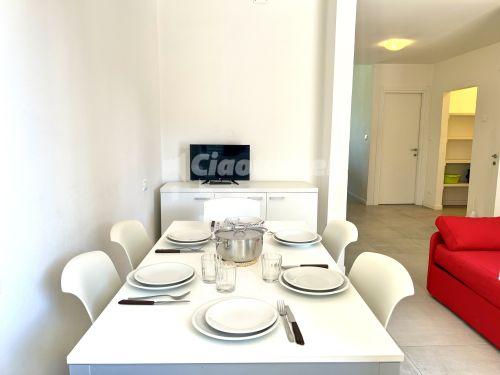 C - 6 főre: nappali kinyitható kanapéval 2 főre, konyhasarok, hálószoba franciaággyal, hálószoba 2 ággyal, fürdőszoba, tv, mikró, széf, légkondicionálás, hajszárító, mosógép, mosogatógép, erkély. A 2. emeleten van.