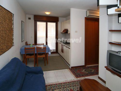 C - 5 főre: alsó szinten: nappali kanapéval 1 főre, konyhasarok, hálószoba franciaággyal, fürdőszoba, erkély. Emeleten: hálószoba franciaággyal, fürdőszoba, erkély. Tv, mikró, légkondicionálás, mosógép. Kétszintes apartman.
