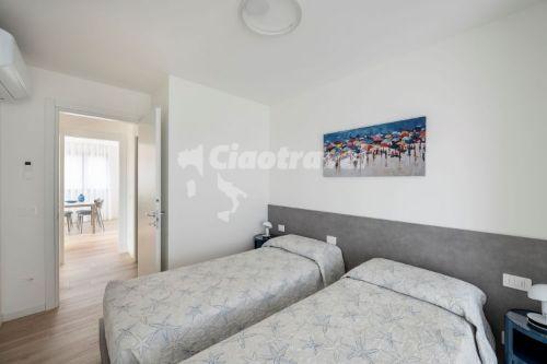 C1 - 6 főre: nappali kihúzható kanapéval 2 főre, konyhasarok, hálószoba franciaággyal, hálószoba 2 ággyal, 2 fürdőszoba, tv, mikró, széf, hajszárító, mosógép, mosogatógép, légkondicionálás, erkély.