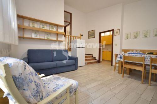 C - 6 főre: nappali kihúzható kanapéval 2 főre, konyhasarok, erkély. 3 lépcsőfok vezet: hálószoba franciaággyal, hálószoba 2 ággyal, fürdőszoba. Külön bejáratú hálószoba 2 ággyal, fürdőszoba. Tv, széf, mikró, légkondicionálás. Kis kert.