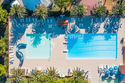 SZOLGÁLTATÁS: úszómedencék, 2 gyermekmedence (kb. jún. közepe-szept.eleje, úszósapka kötelező), élelmiszerbolt, 2 étterem, 2 bár, sportpályák, kerékpárbérlés, színház, animáció, játszótér, kisvonat a strandra, parkoló.