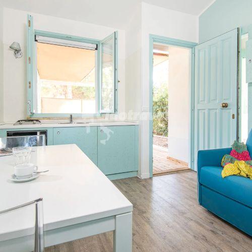 Plus - 4 főre: nappali konyhasarokkal és emeletes ággyal, hálószoba 2 ággyal, fürdőszoba, tv, légkondicionálás, zárt terasz. VAGY nappali konyhasarokkal és 2 ággyal, hálószoba 2 ággyal, fürdőszoba, tv, légkondicionálás, zárt terasz. (32 m2)