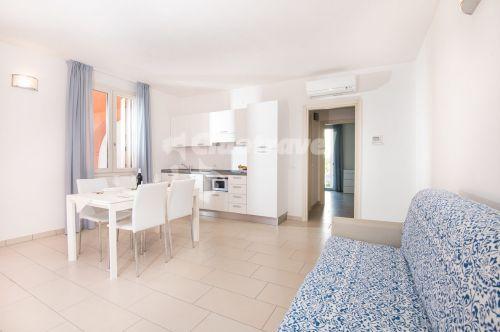 B - 4 főre: nappali kihúzható kanapéval 2 főre, konyhasarok, hálószoba franciaággyal, fürdőszoba, tv, légkondicionálás, mikró, mosogatógép, mosógép, széf, hajszárító, erkély.