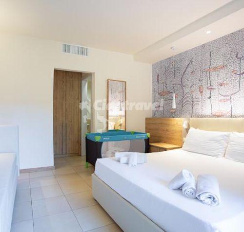 Family XL - 6 főre: nappali 2 kanapéval, konyhasarok, hálószoba franciaággyal, hálószoba 2 ággyal, fürdőszoba, tv, széf, kicsi hűtő, légkondicionálás, hajszárító, erkély/ terasz. Felújított szobák a földszinten, 1. vagy 2. emeleten van. (38 m2)