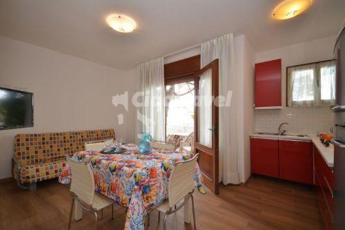 C - 6 főre: nappali kihúzható kanapéval 2 főre, konyhasarok, 2 hálószoba 2-2 ággyal, fürdőszoba, tv, széf, mikró, légkondicionálás, erkély. Az 1. emeleten van.