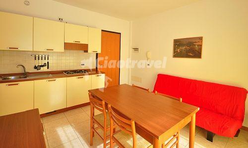 B - 5 főre: nappali kinyitható, 2 fős kanapéval, konyhasarok, hálószoba franciaággyal és 1 ággyal, fürdőszoba, tv, légkondicionálás, mikró, mosógép, erkély.