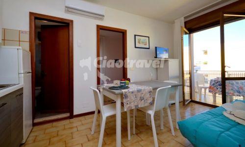 B - 5 főre: nappali kihúzható kanapéval 2 főre, konyhasarok, hálószoba franciaággyal és 1 ággyal, fürdőszoba, tv, széf, mikró, légkondicionálás, erkély.