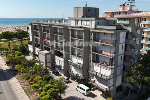 ELHELYEZKEDÉS: ötemeletes apartmanház a Via Pleione és a tengerparti sétány sarkán, Bibione Spiaggia központjában.