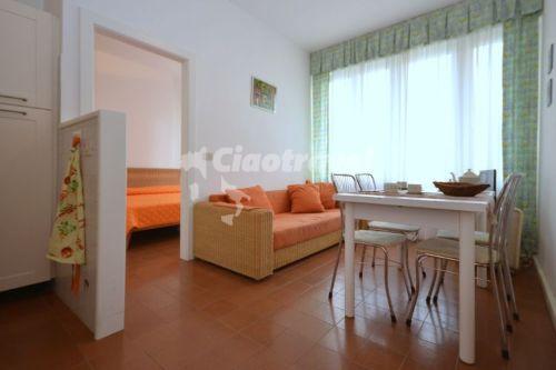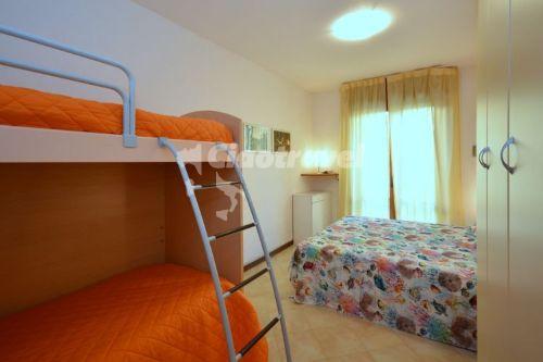 B - 6 főre: nappali kihúzható kanapéval 2 főre, konyhasarok, hálószoba franciaággyal és emeletes ággyal, fürdőszoba, tv, mikró, széf, légkondicionálás.