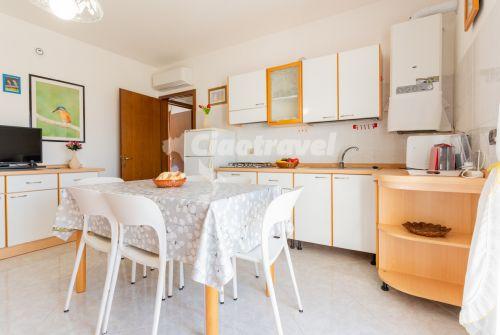 B - 6 főre: nappali kihúzható kanapéval 2 főre, konyhasarok, hálószoba franciaággyal és emeletes ággyal, fürdőszoba, tv, mikró, mosógép, légkondicionálás, erkély.