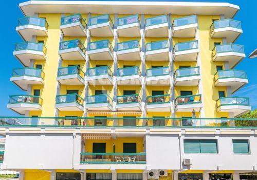 ELHELYEZKEDÉS: két, hatemeletes épületből álló apartmanház a Via Altinate (főutca) és a Piazza Torino találkozásánál, Lido di Jesolo keleti részén.