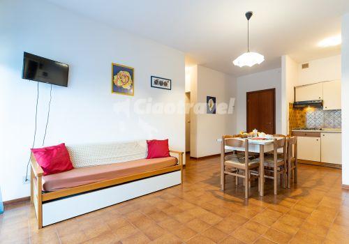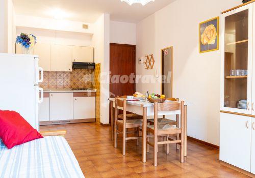 B - 5 főre: nappali kinyitható kanapéval 2 főre, konyhasarok, hálószoba 3 ággyal, fürdőszoba, tv, légkondicionálás, erkély.