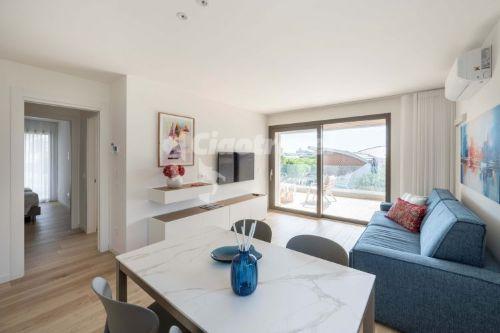 C2 - 6 főre: nappali kihúzható kanapéval 2 főre, konyhasarok, hálószoba franciaággyal, hálószoba 2 ággyal, 2 fürdőszoba, tv, mikró, széf, hajszárító, mosógép, mosogatógép, légkondicionálás, erkély, tetőterasz jacuzzi-val.