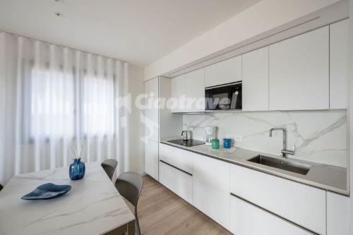 C1 - 6 főre: nappali kihúzható kanapéval 2 főre, konyhasarok, hálószoba franciaággyal, hálószoba 2 ággyal, 2 fürdőszoba, tv, mikró, széf, hajszárító, mosógép, mosogatógép, légkondicionálás, erkély.