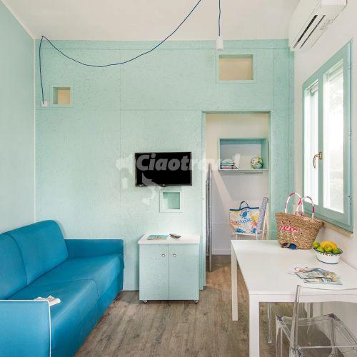 Charme - 5 főre: nappali konyhasarokkal és kihúzható kanapéval 2 főre, hálószoba 2 ággyal, fürdőszoba, tv, légkondicionálás, mikró, széf, hajszárító, terasz.